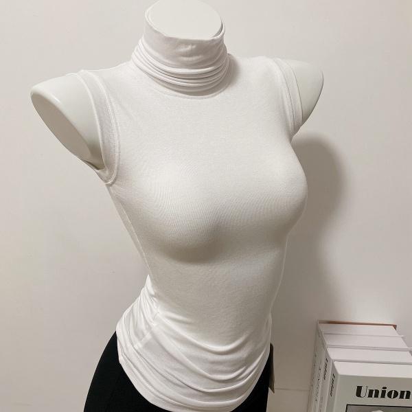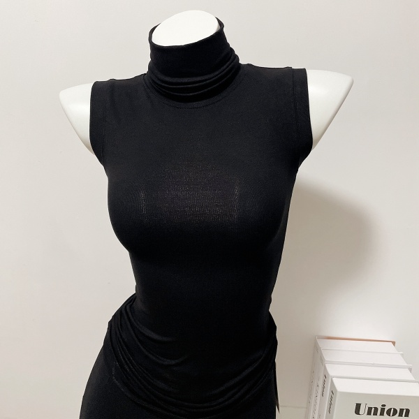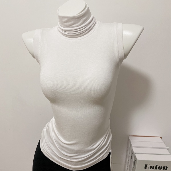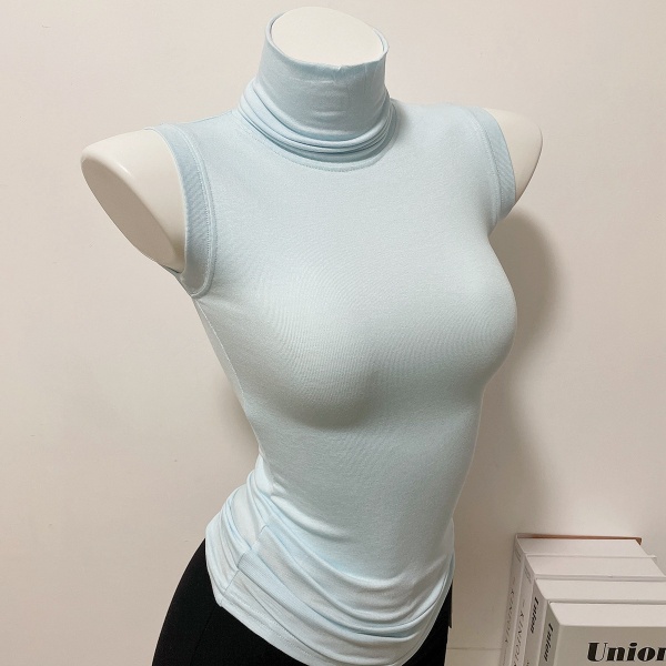 商品属性 [上市年份/季节] 2024年夏季 [主面料成分] 莫代尔纤维 [主面料成分含量] 95%及以上 [是否跨境货源] 否 [版型] 紧身型 [衣长] 普通款(50cm<衣长≤65cm) [袖型] 无袖 [袖长] 无袖 [面料名称] 莫代尔 [领型] 高领 [风格] 纯欲风 [风格类型] 私服名媛