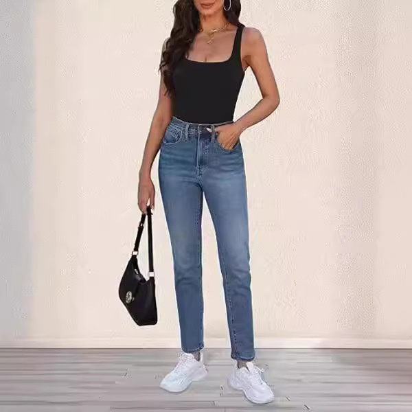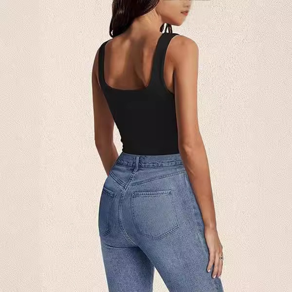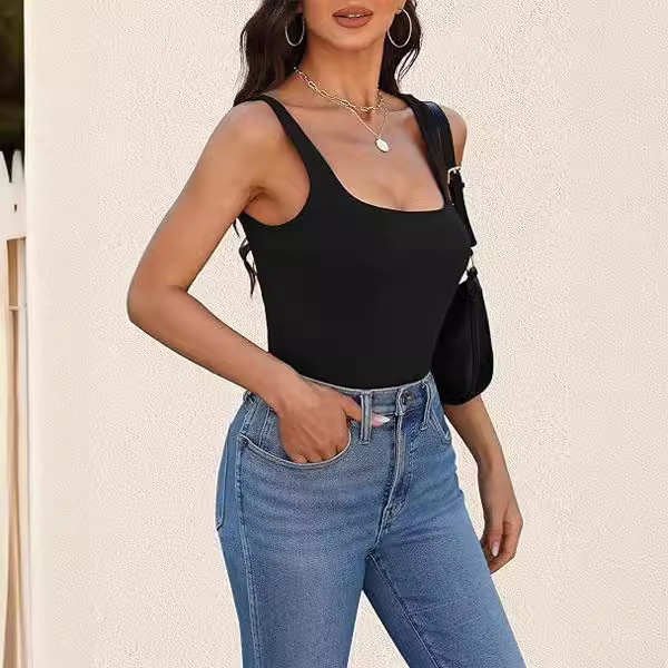 跨境欧美女t恤2024新款夏季时尚无袖马甲方领背心修身螺纹短上衣