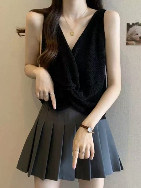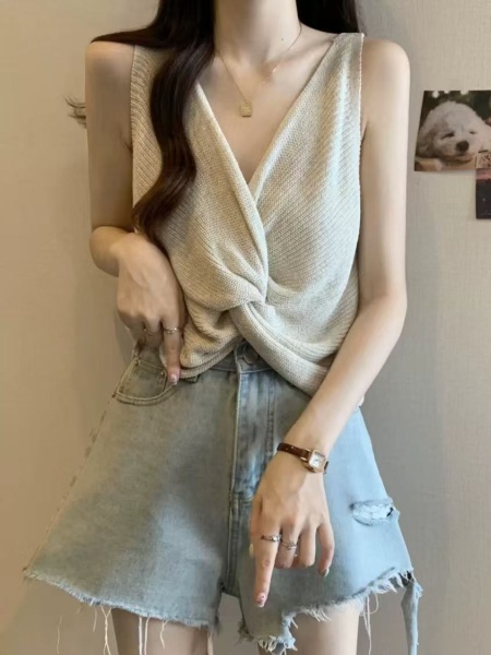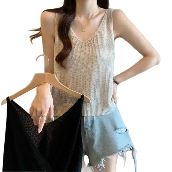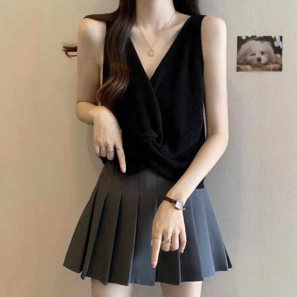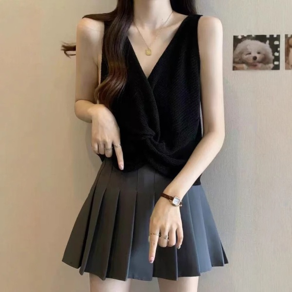 性感美背针织衫正反两穿吊带背心法式独特别致坎肩V领无袖上衣女