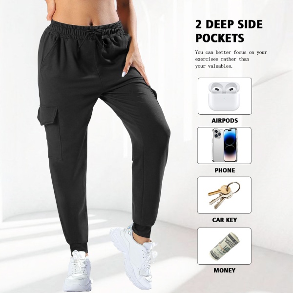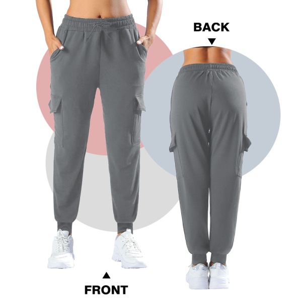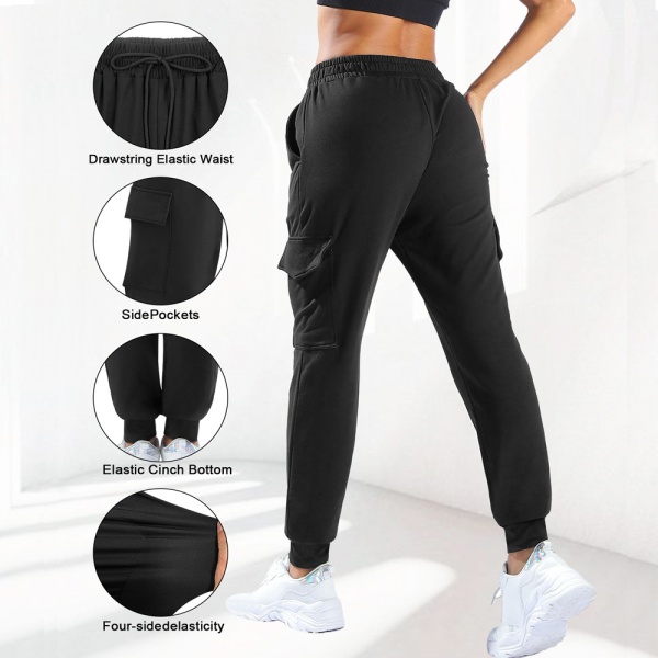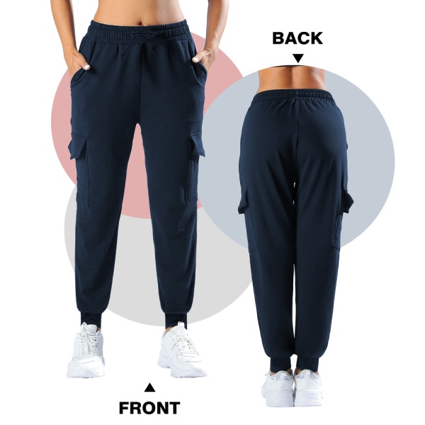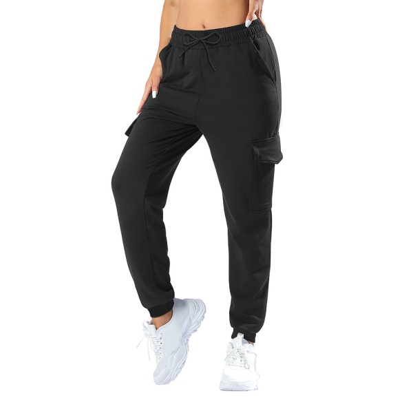 跨境现货欧码抽绳工装口袋束脚裤系带宽松休闲多口袋束脚运动裤女