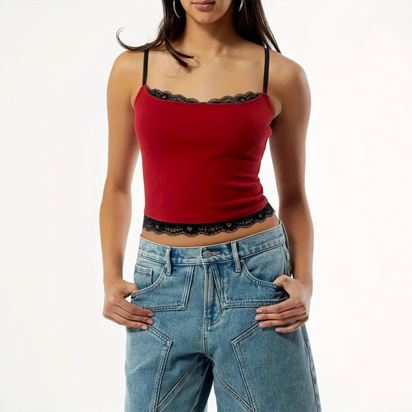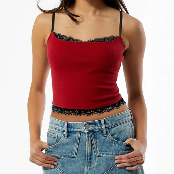欧美女装亚马逊2025年春夏季新款辣妹纯色蕾丝性感吊带小背心上衣