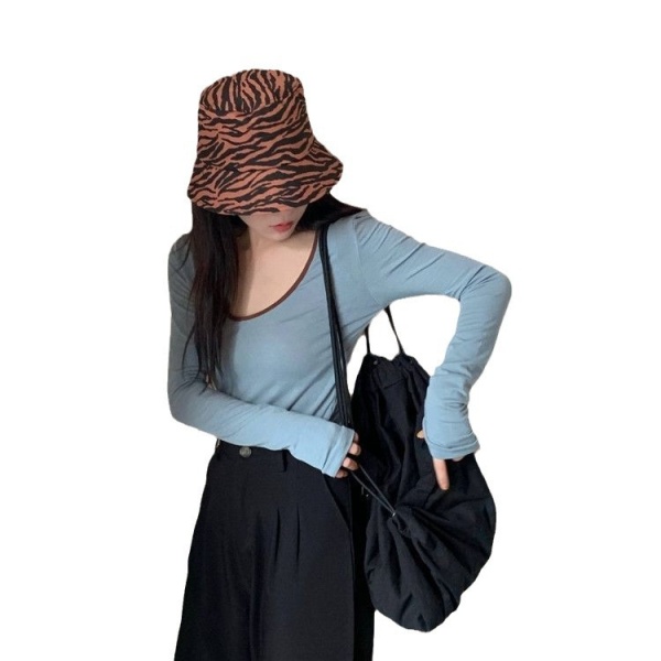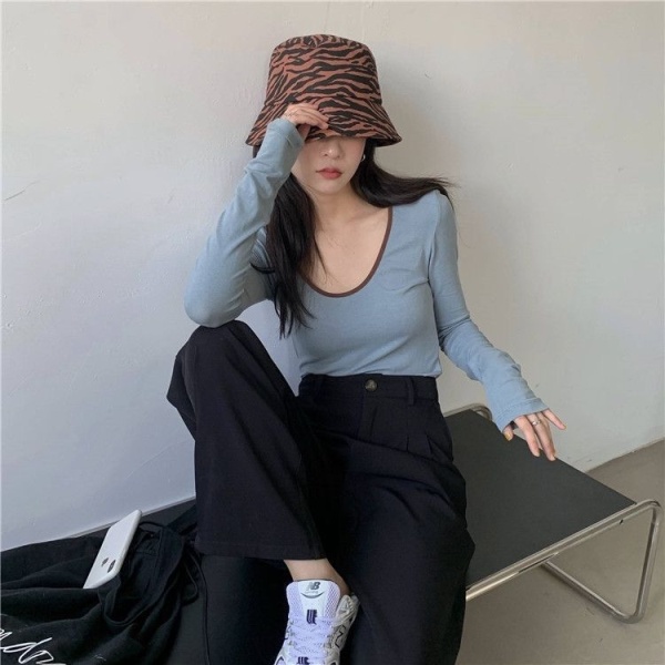 纯欲风性感大U低领打底衫女2025春季内搭长袖t恤修身正肩茶艺上衣