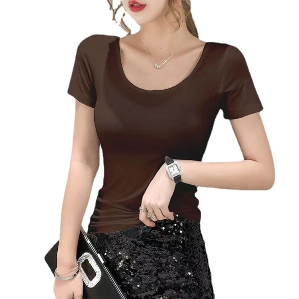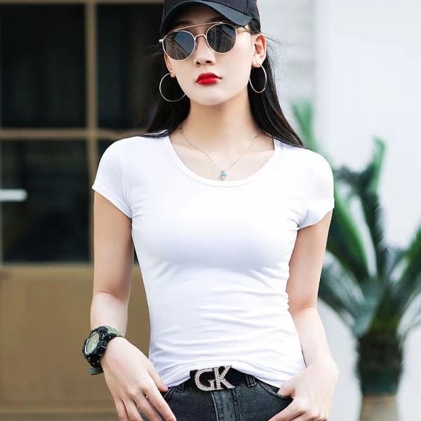 女式圆领打底衫春季新款包边休闲内搭上衣夏款纯色修身短袖t恤女