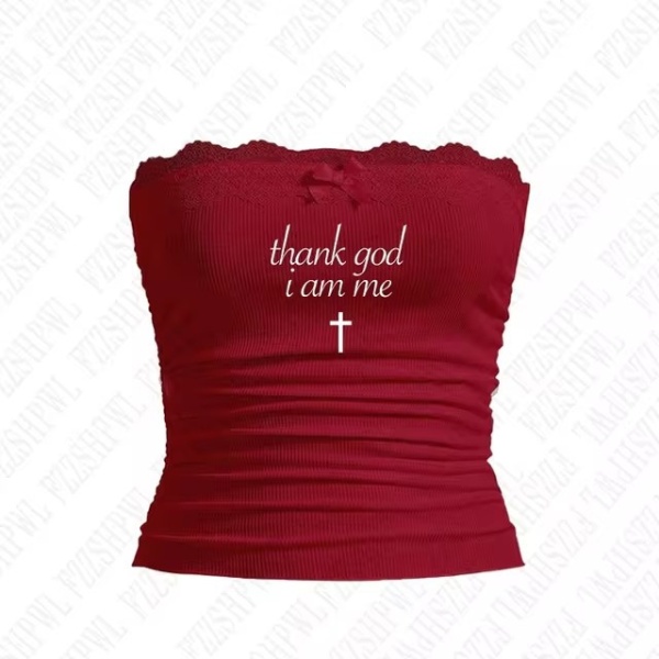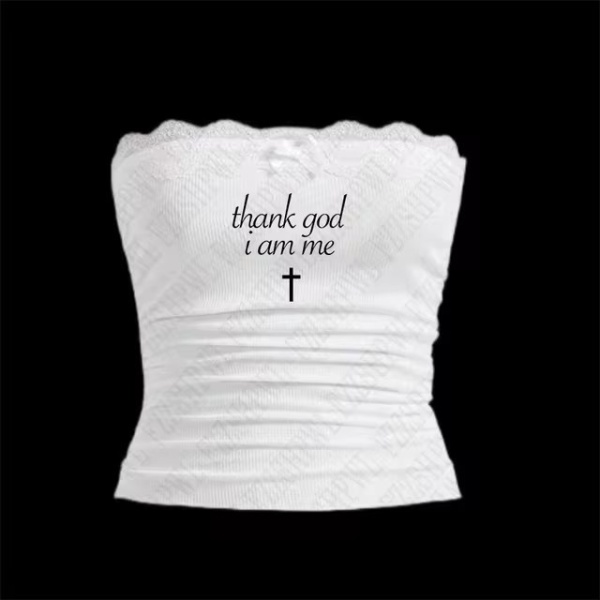 商品属性 [上市年份/季节] 2024年夏季 [主面料成分] 涤纶(聚酯纤维) [主面料成分含量] 95%及以上 [图案] 字母/数字/文字 [弹力] 中弹 [是否跨境货源] 否 [款式] 抹胸 [流行元素] 马卡龙色 [版型] 修身型 [肩带样式] 无肩带 [衣长] 短款(40cm<衣长≤50cm) [面料名称] 涤纶 [风格] 欧美风 [风格类型] 街头潮人