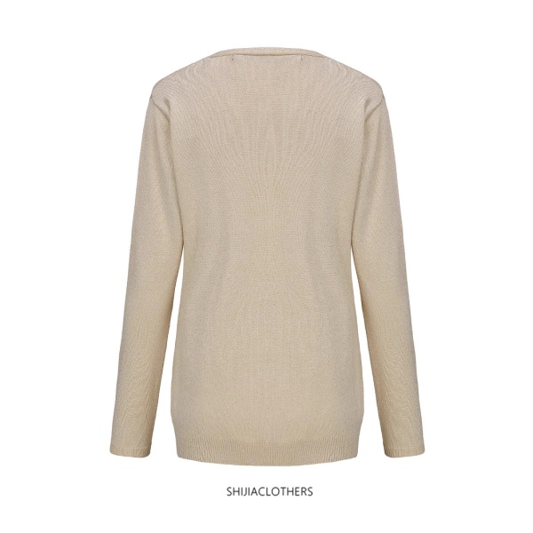 针织开衫外套跨境欧美春秋女装外搭纯色单排扣宽松大码精纺V领