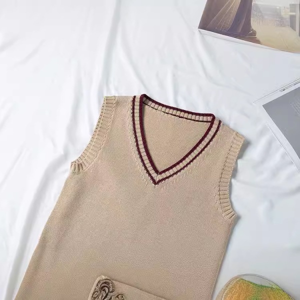 商品属性 [上市年份/季节] 2022年春季 [主面料成分] 棉 [主面料成分2] 棉 [主面料成分2的含量] 100 [主面料成分含量] 90%(含)-95%(不含) [主面料成分的含量] 100 [厚薄] 适中 [工艺] 手编 [是否跨境货源] 否 [校服款式] 马甲背心 [款式] 无袖款 [流行元素] 纯色 [穿着方式] 套头 [袖型] 无袖 [袖长] 无袖 [面料名称] 棉 [领型] V字领 [风格] 学院风 [风格类型] 清新甜美