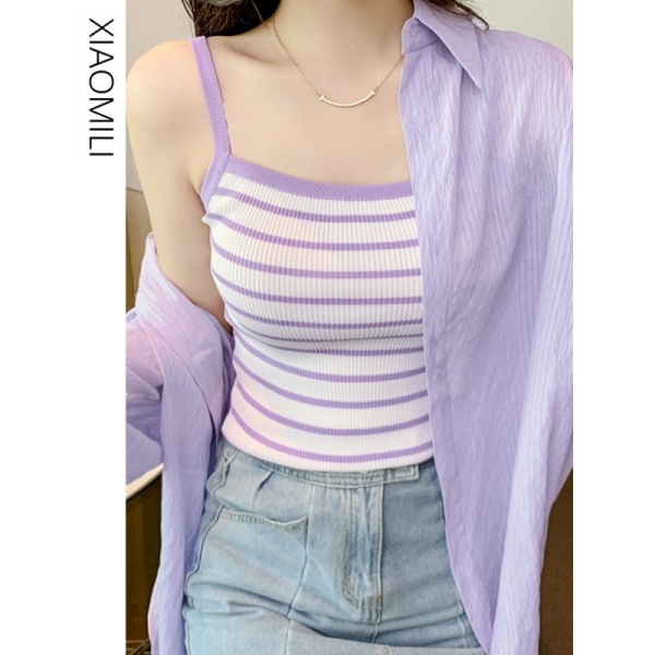 辣妹条纹吊带背心女性感夏季打底衫内搭针织2025新款别致法式上衣